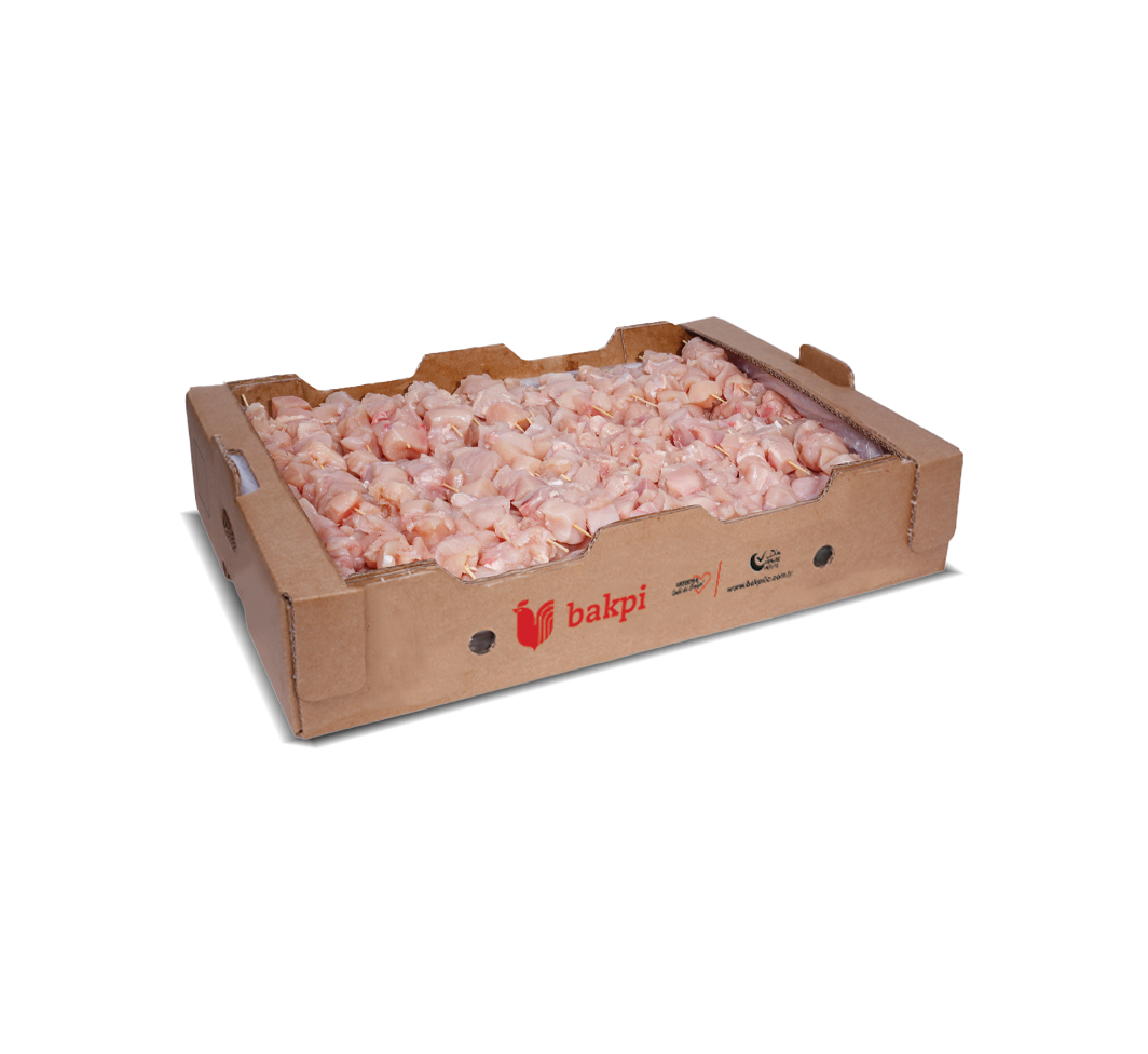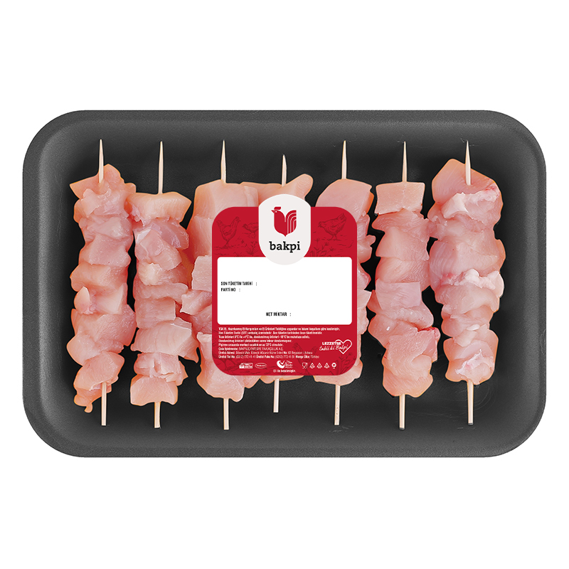 Chicken tenderloin is cut into small pieces and put on skewers.